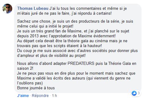“Cette opportunité d’adapter le travail de Maxime Chattam est un défi fantastique”, selon les scénaristes cités par Variety. “L’univers complexe et documenté de Maxime est absolument excitant et nous sommes enthousiastes à l’idée d’adapter ‘Prédateurs’”, ont-ils ajouté.